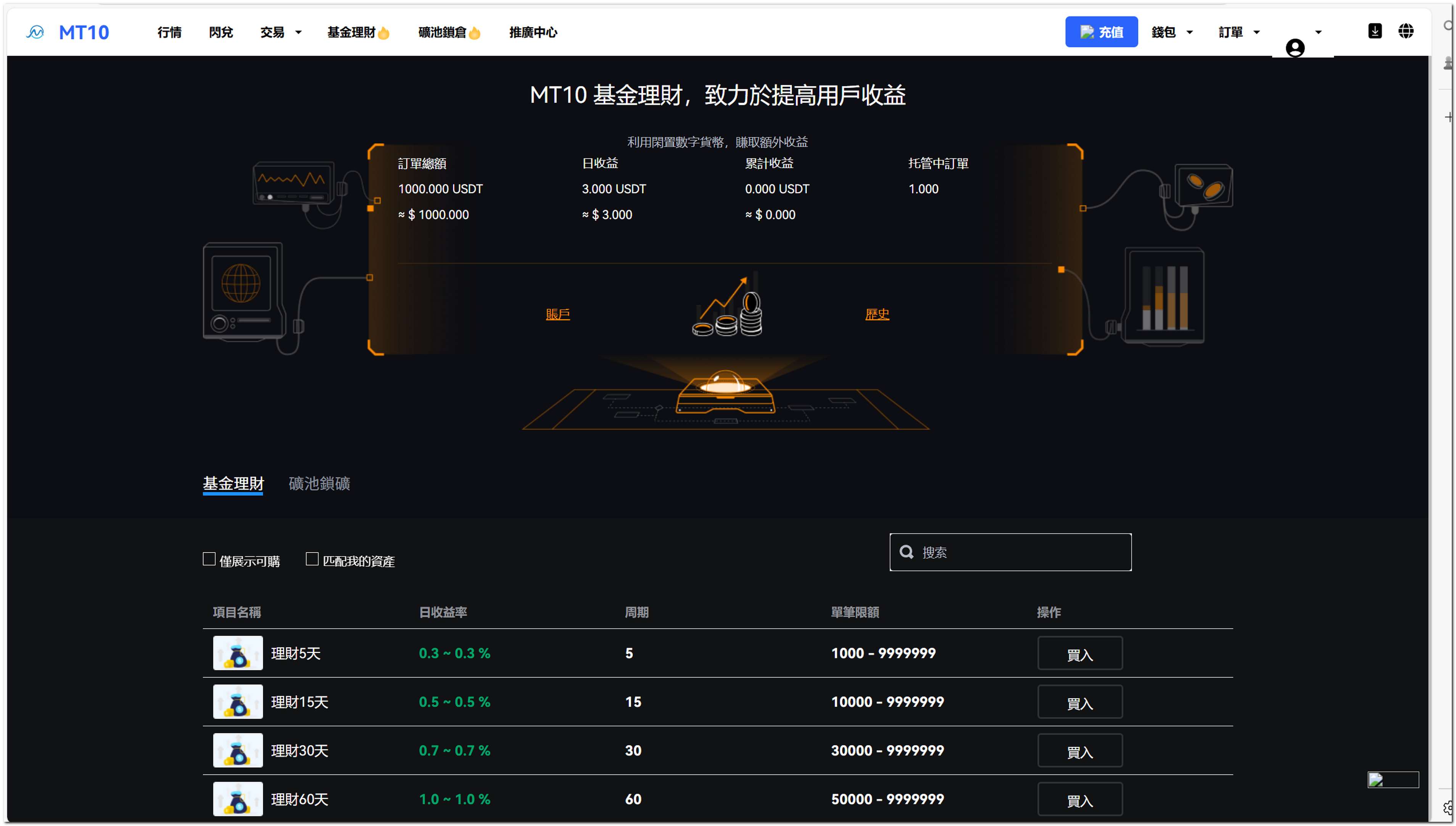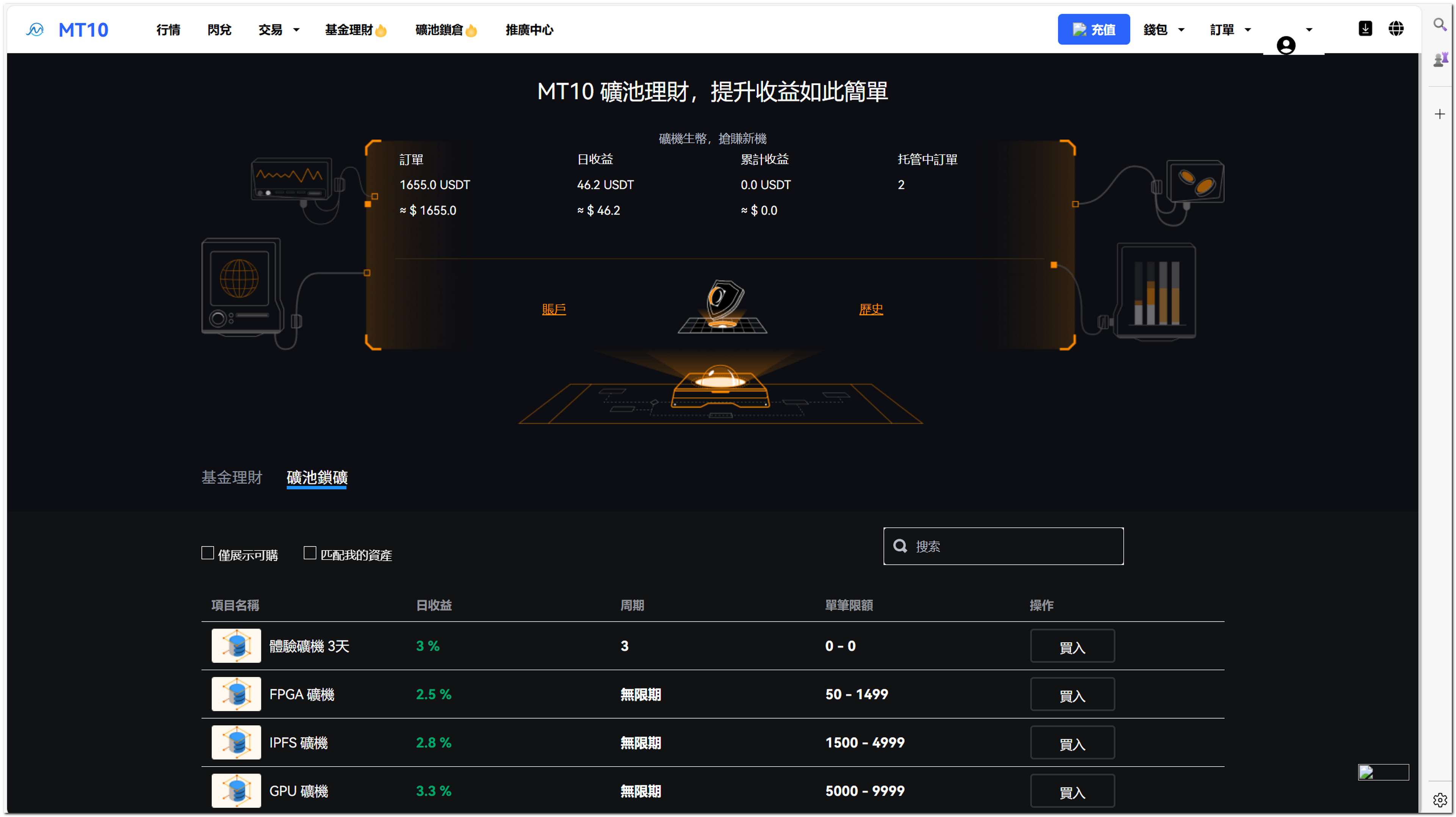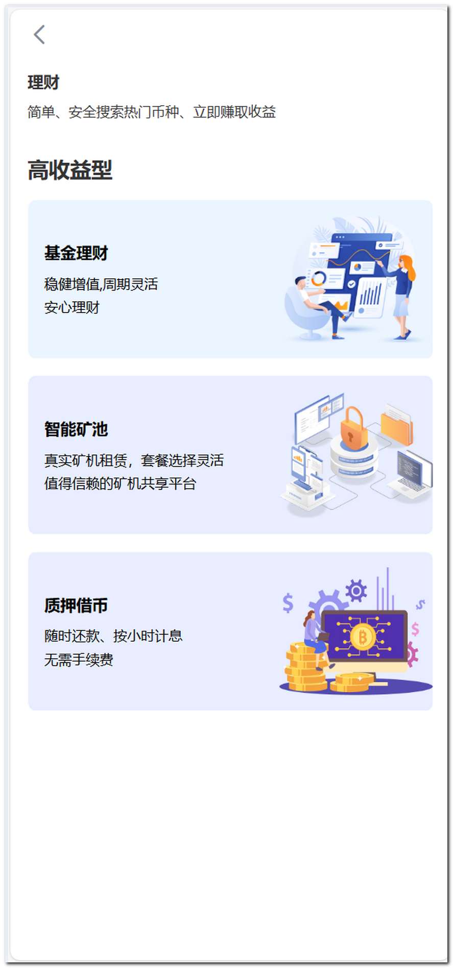 理财产品、质押挖矿、借币服务、矿机收益等