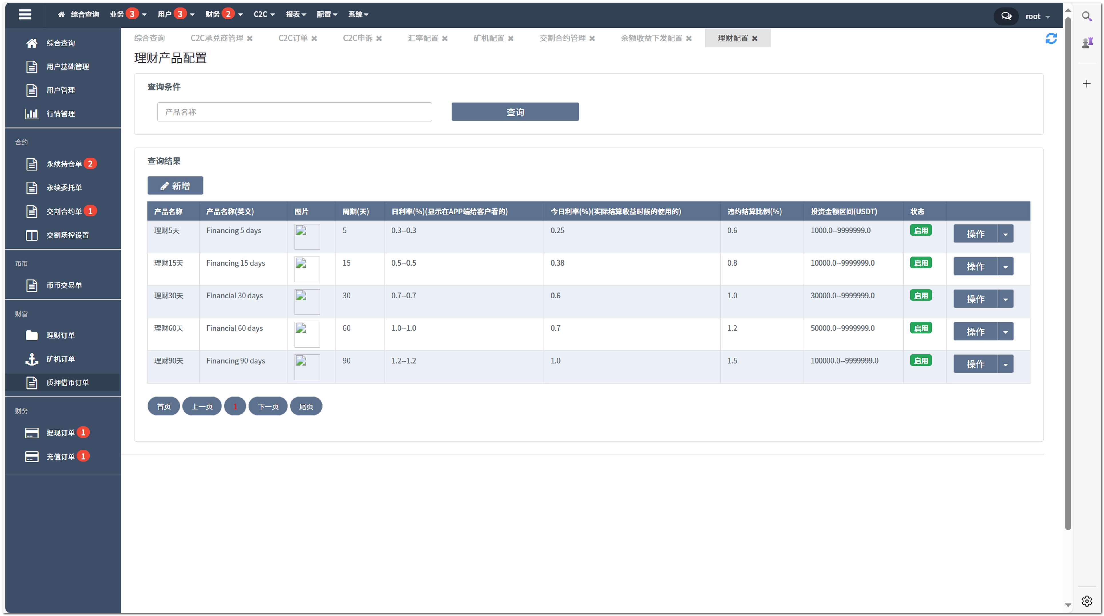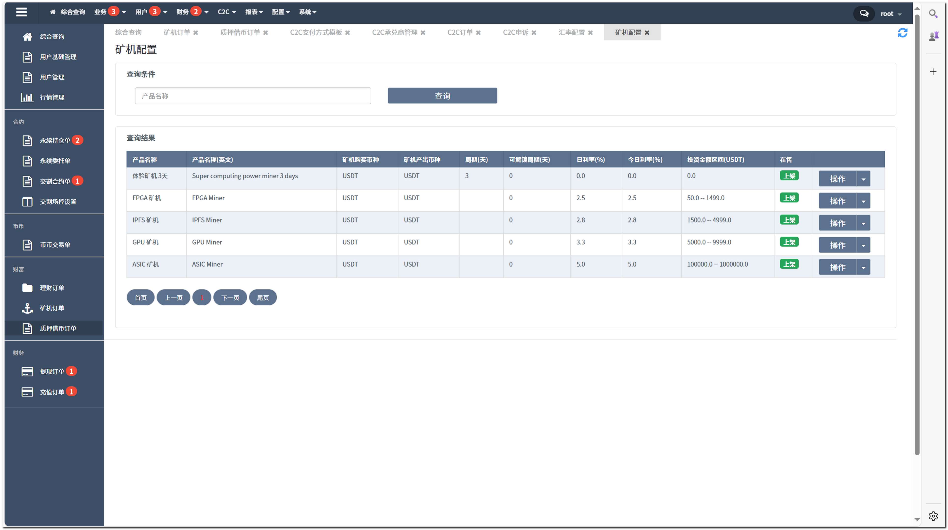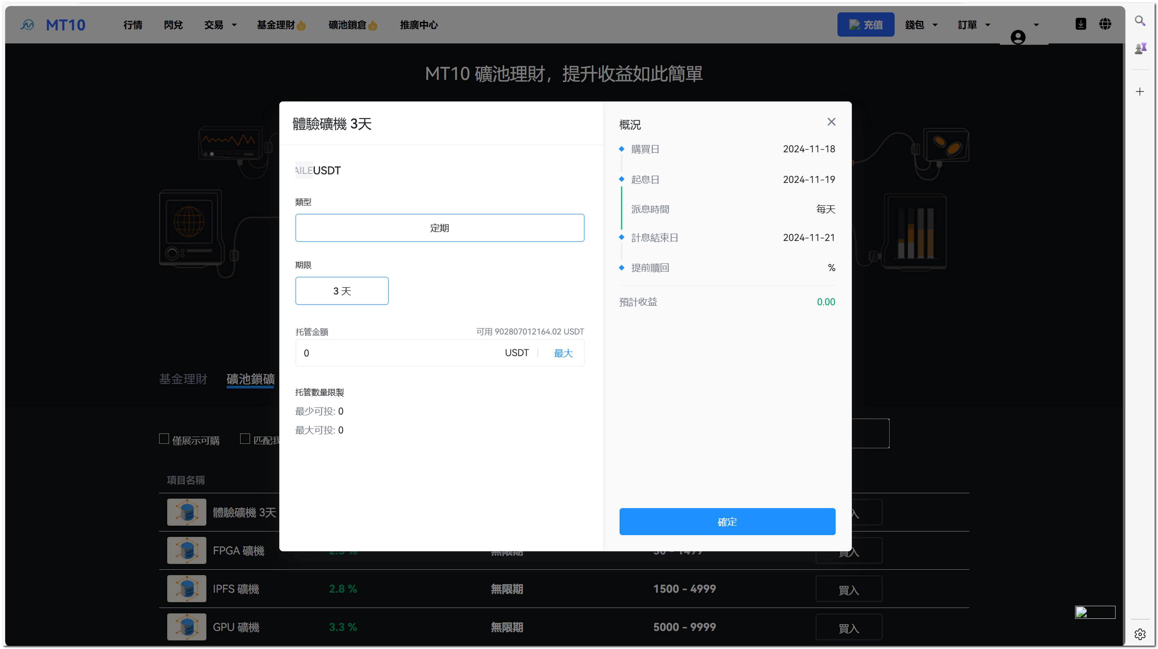 理财产品、质押挖矿、借币服务、矿机收益等