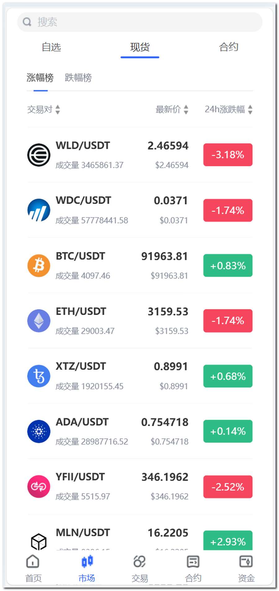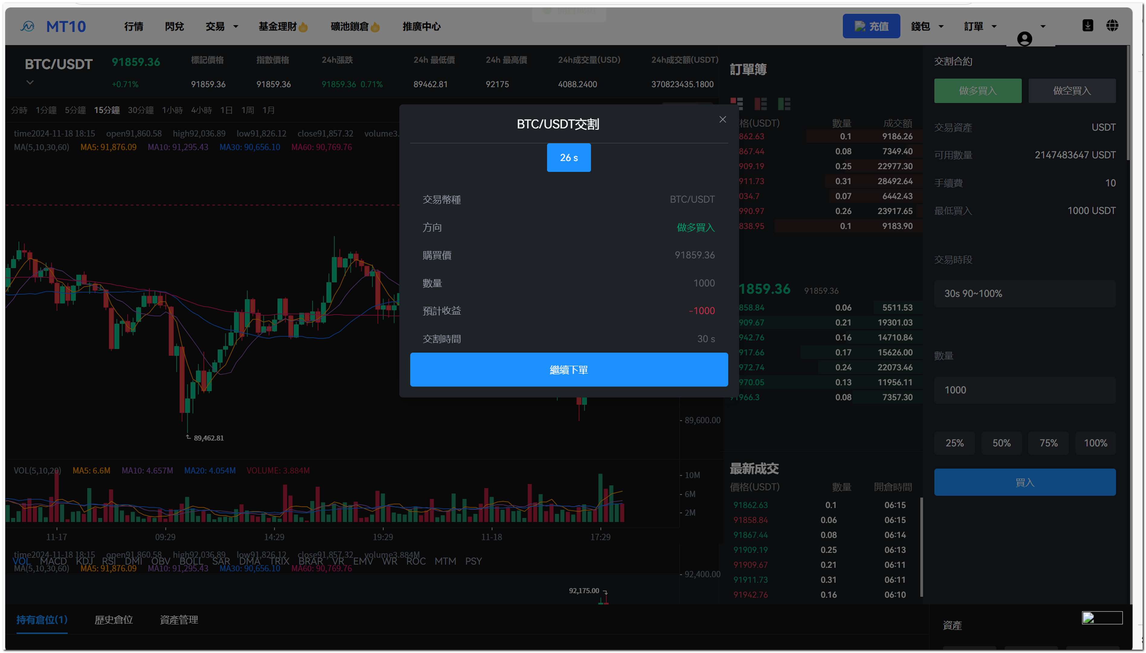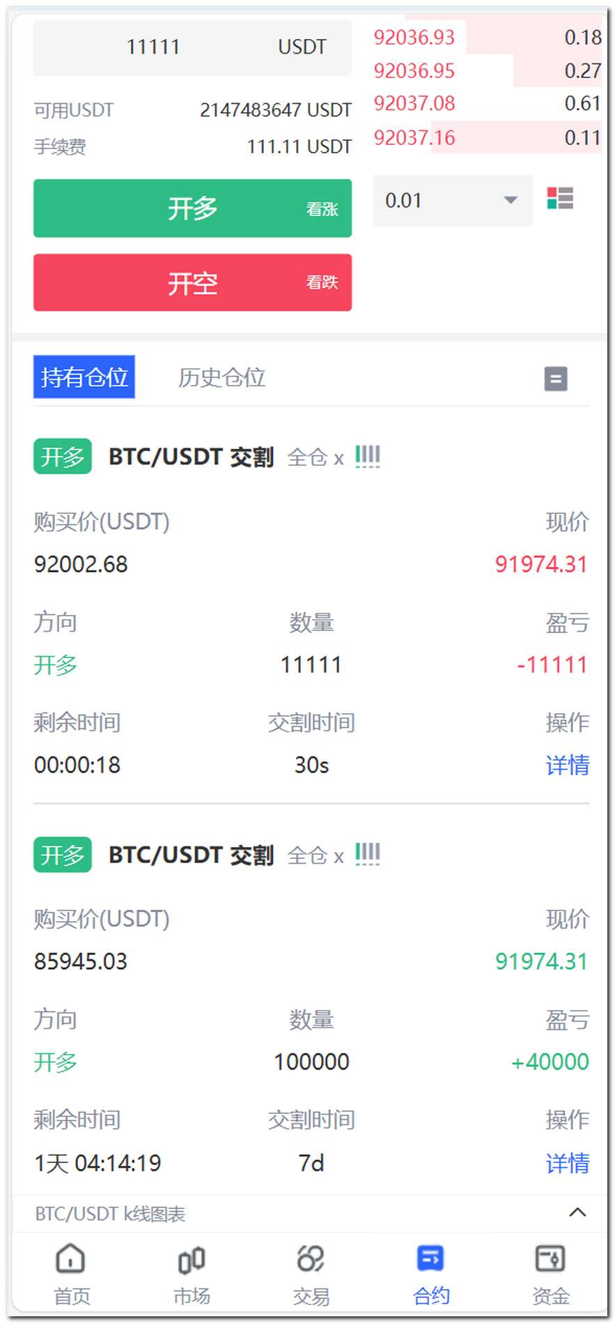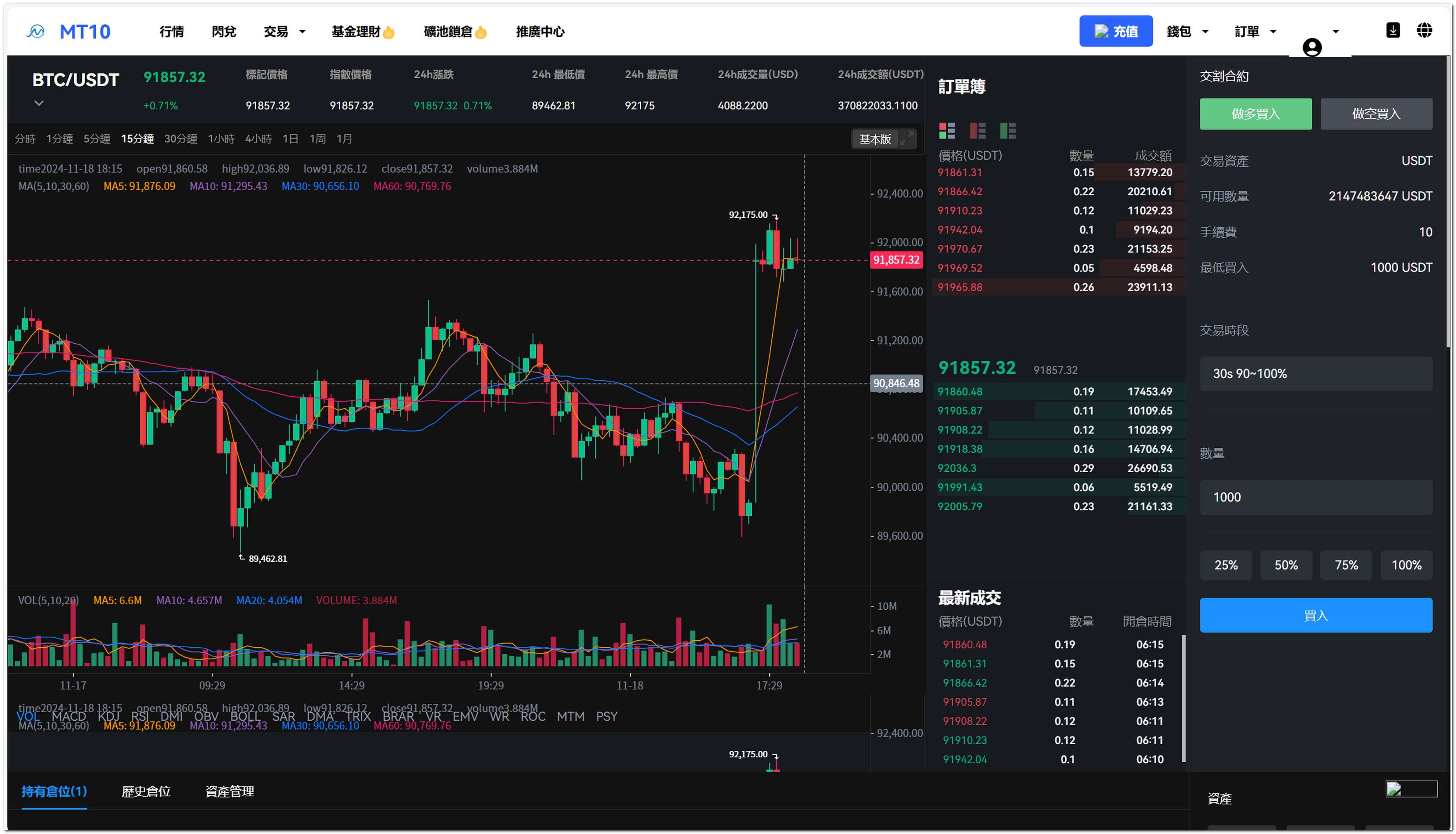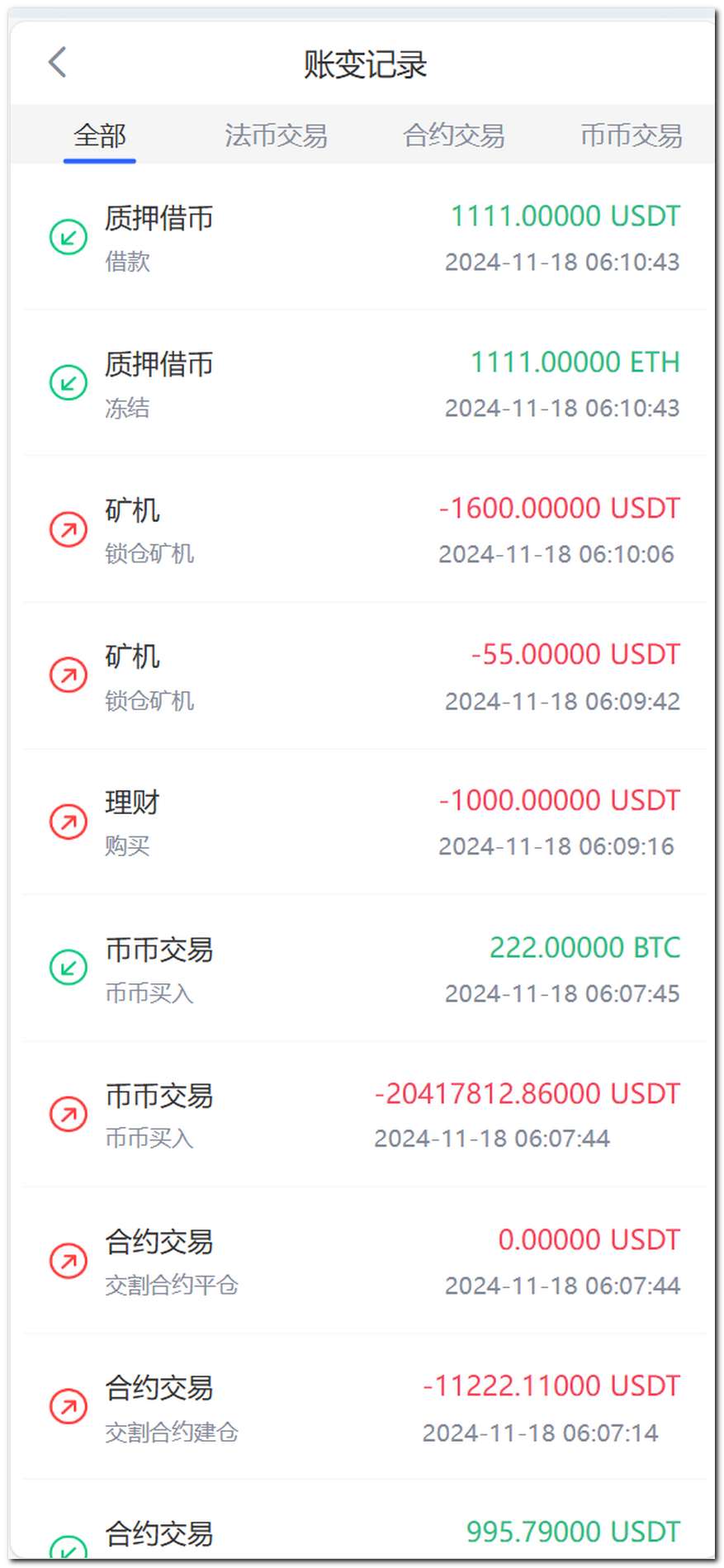 币币交易、永续合约、秒合约、交割合约、期权交易