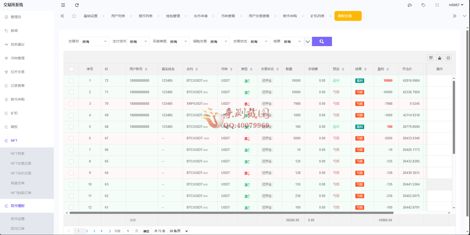 测试后台截图