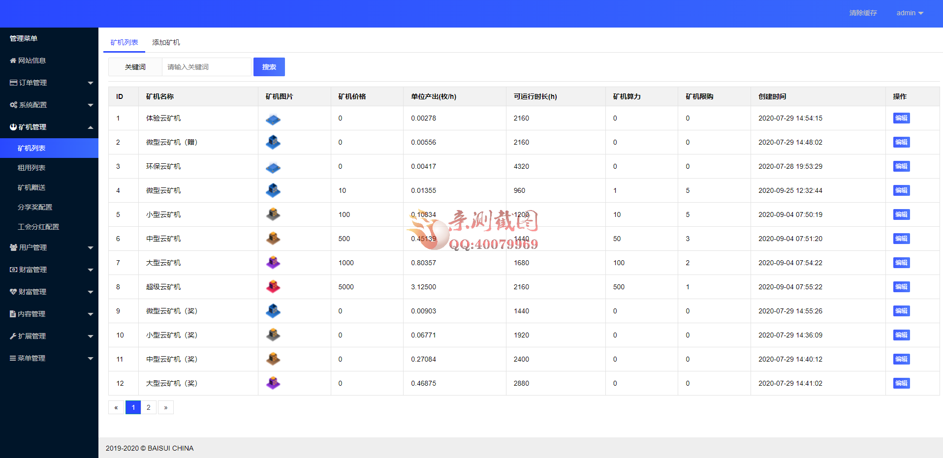 测试后台截图