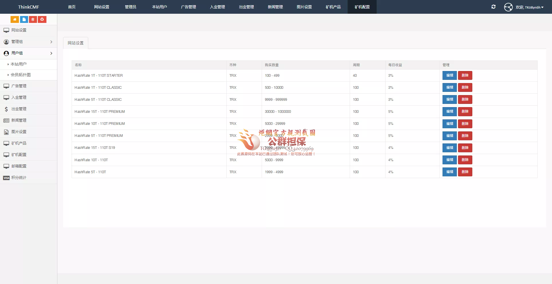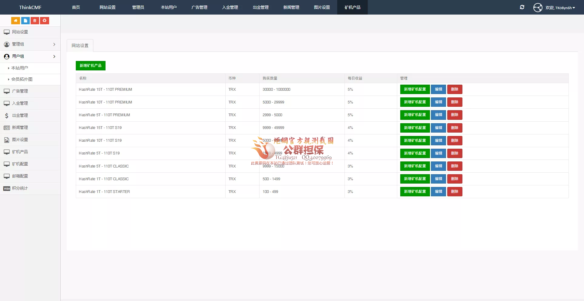 一款ThinkCMF开发的TRX矿机,完美运营级别,4国语言、usdt充值