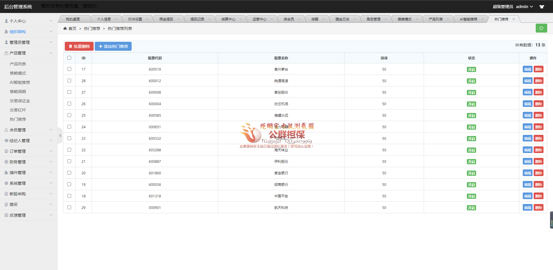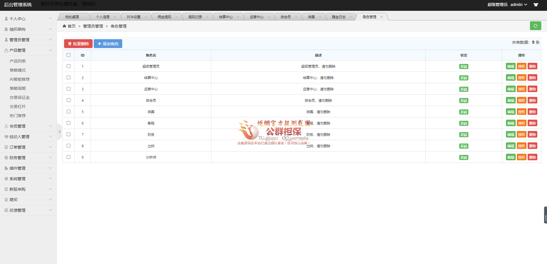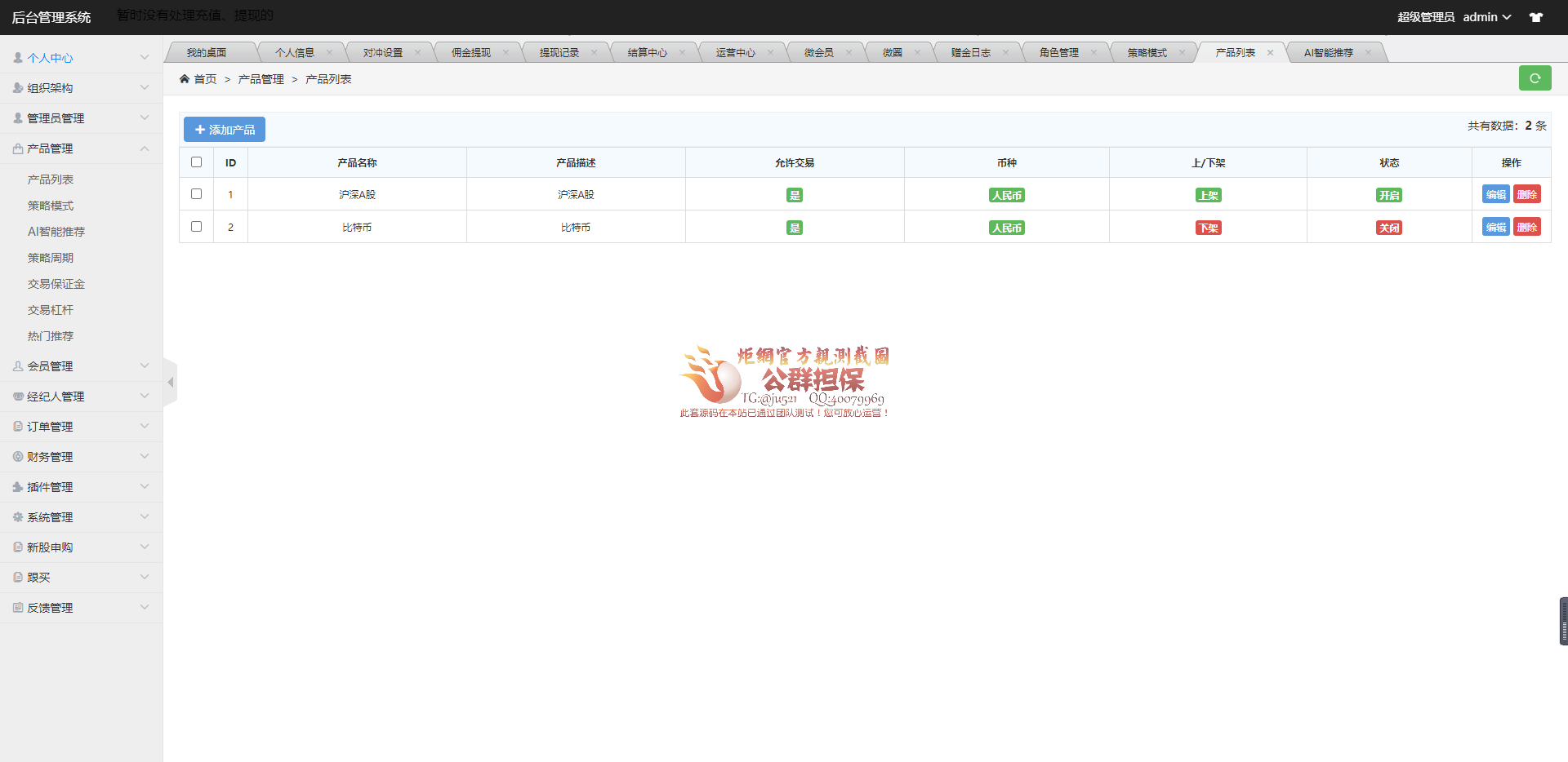 测试后台截图