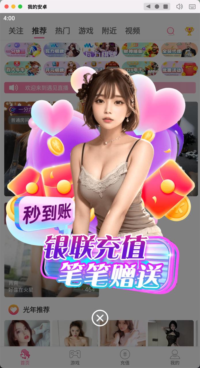 直播间与视频系统内置多种游戏入口,提升用户活跃度,增强平台盈利能力。