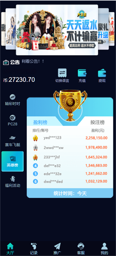 支持返水和佣金。