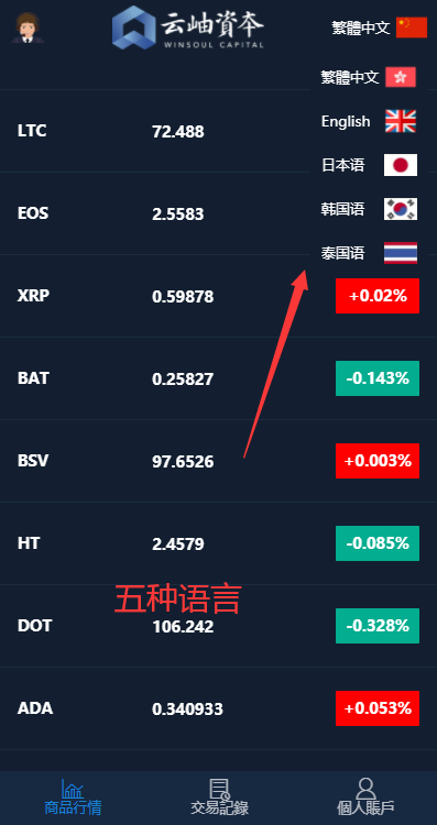 五种语言:繁体中文,英文,日本语,韩国语,泰国语