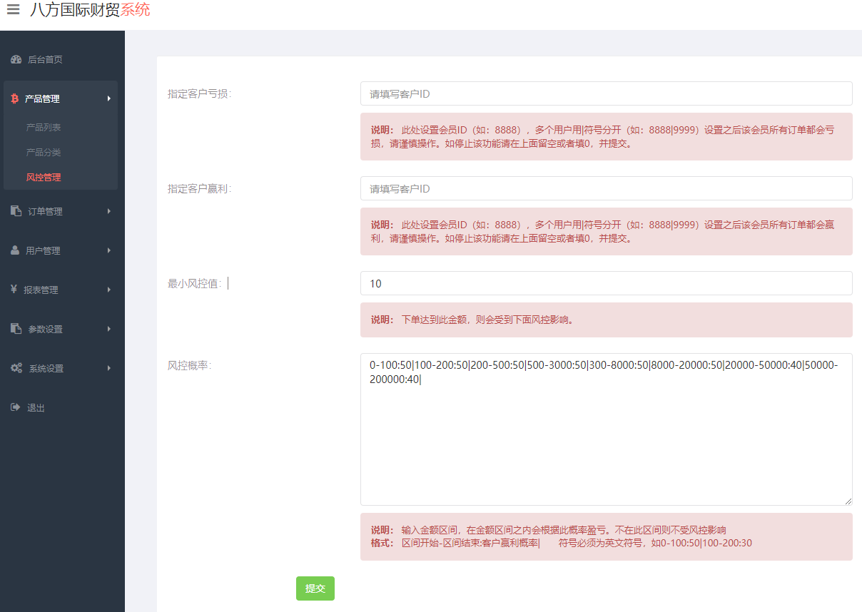 可单产品控杀,可指定客户控制亏损。